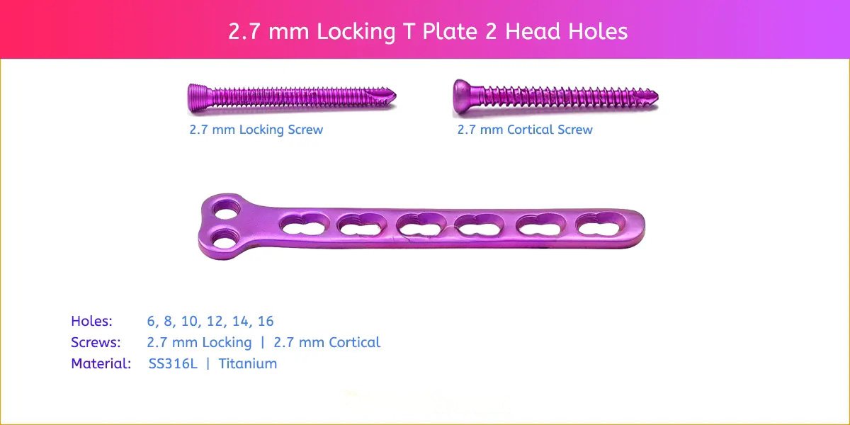 2.7 mm Locking T Plate 2 Head Holes